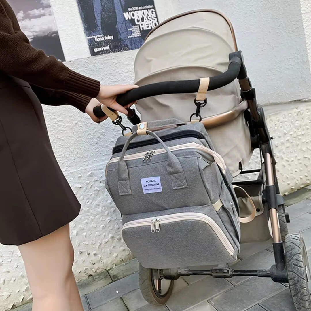 Offers spacious, all-in-one storage with multiple smart pockets (including insulated bottle holders) to keep all essentials, bottles, wipes, and clothes, organised and easy to grab.